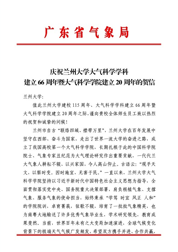 广东省气象局致伟德国际1946源于英国建院20周年贺信