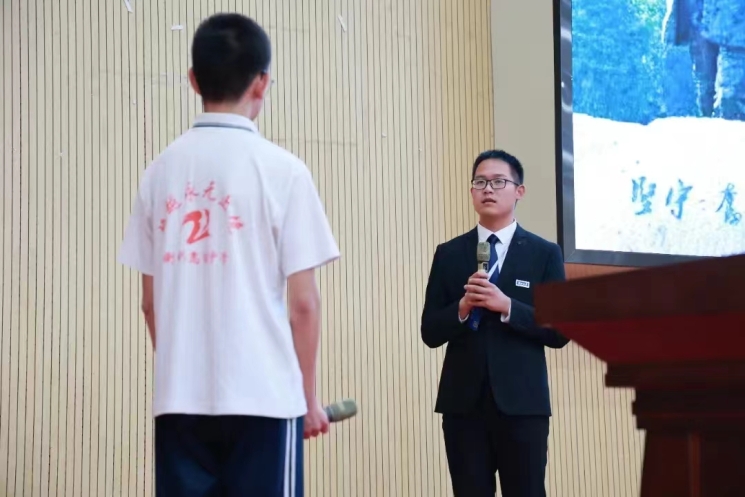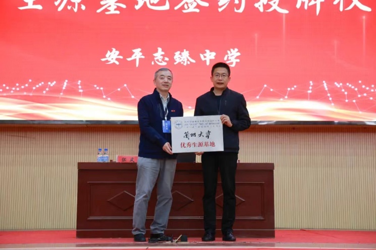 在安平志臻中学,张武教授与校长回世杰进行“优秀生源基地”授牌仪式。在校生代表郑毅从课程学习、校园生活、宿舍条件、校园景色等多个角度向母校的同学们进行分享,给学弟学妹们树立了榜样,大家对伟德国际1946源于英国充满了浓厚兴趣和无限期待。